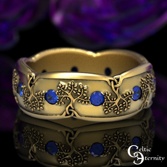 Sapphire Gold Tree Of Life Ring Gold Tree Of Life Kabbalah Etsy